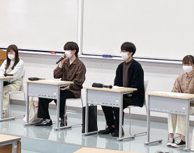 本学の卒業生を講師として招き、業界説明や入社後の実体験をお話しいただくセミナーです。在学生は卒業生との対話を通じて、進路選択に役立てています。