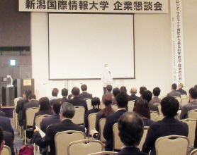 就職活動年次を対象に、毎年NUIS生を積極採用するために、多くの企業・ 団体から参加をいただいています。業界のことや、業務内容、採用予定など、細かな情報を得られる絶好の機会であり、「内定」に向け大きくステップアップできる学内説明会です。