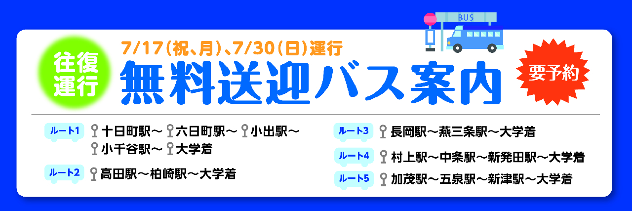 ※必ず各回開催3日前の木曜日までにオープンキャンパスにお申込みください。期日までにお申込みしていない方には交通費の支給ができません。
