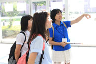 オープンキャンパス当日は、学生スタッフが、お出迎えから、スケジュールや大学施設のご案内を担当します。