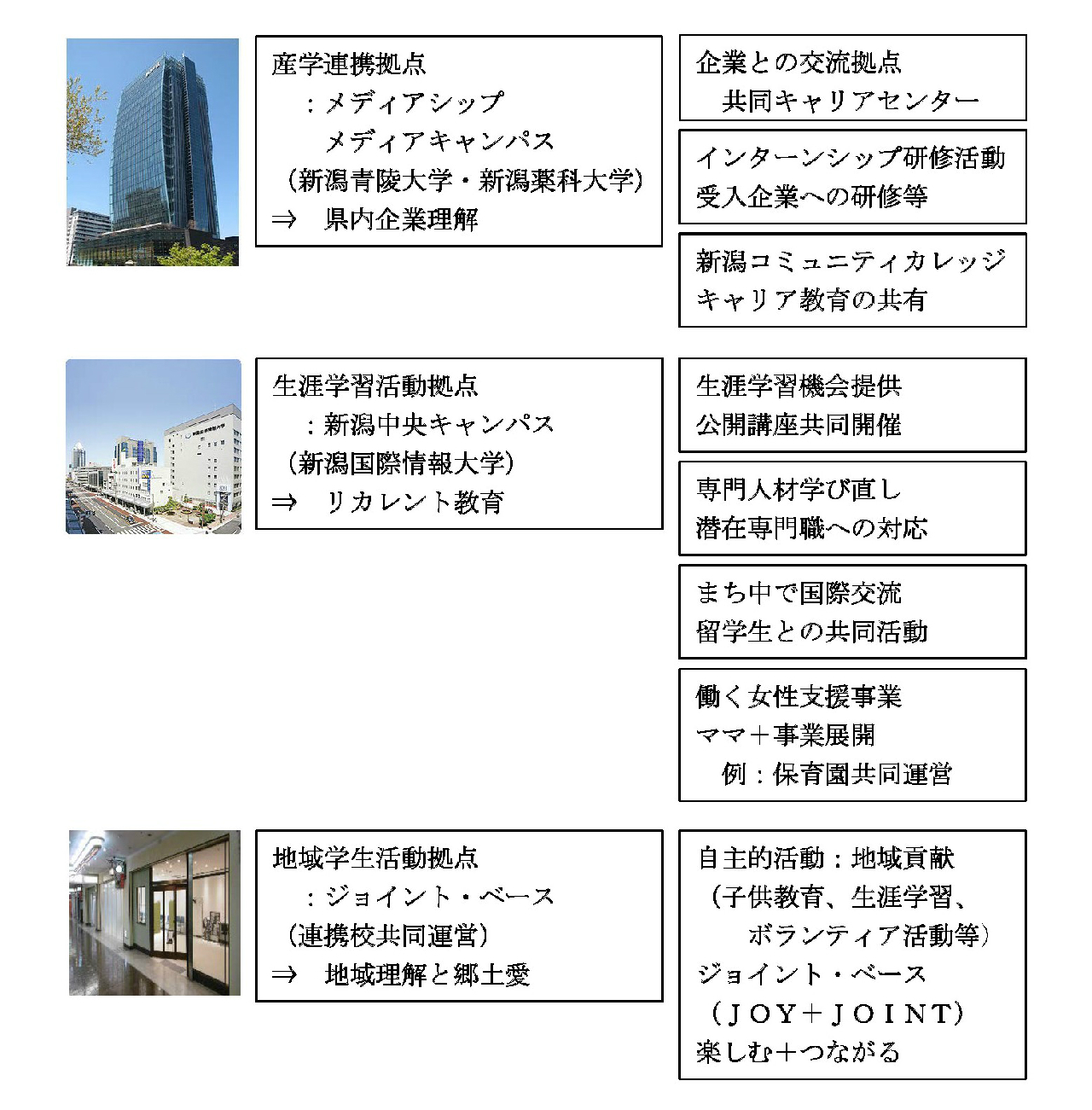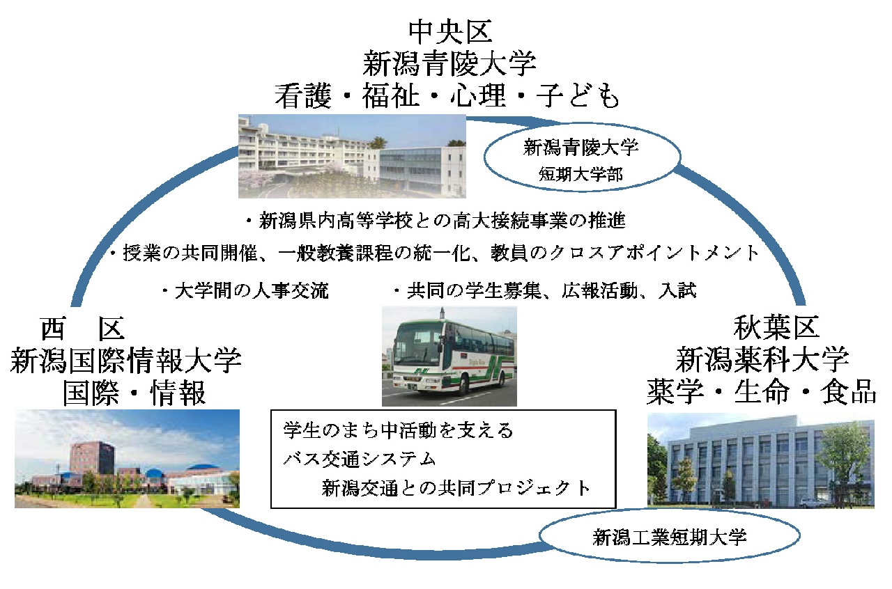 構成大学である新潟青陵大学、新潟青陵大学短期大学部、新潟国際情報大学、新潟薬科大学、新潟工業短期大学は、今後も教育・研究・国際交流・社会貢献活動について連携・協力していきます。