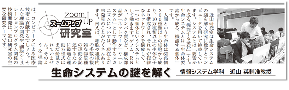 - 平成 25 年度新潟大学脳研究所「脳神経病理標本資源活用の先端的共同研究拠点」共同利用・共同研究の課題「大規模ゲノムデータを基盤とした情報解析手法の開発(研究代表者:近山英輔)」の報告書がWeb利用可能になっています。ヒト転写制御ネットワークに着目した研究。