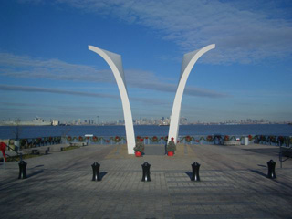 その友人によれば、スタテン島はもともとイタリアからの移民がほとんどで、今でもイタリア人が多いということです。「9・11」の時にもスタテン 島から通う多くの市民が犠牲になっており、あまり知られていませんが、美しくも痛々しい記念碑もありました(写真真ん中)。この記念碑の内側には、一人ひ とりの横顔のレリーフが象られ、その上に一人ひとりの名前と仕事の内容、会社名までが明記されていました。