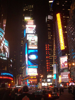 帰りには、ロックフェラーセンターのクリスマスツリーと、タイムズスクエアに寄ってから帰りました(写真右はタイムズスクエア)。タイムズスクエ アは、香港や新宿を彷彿とさせる資本主義文化の終着点を感じました。この付近にはトイレが少ないのだそうですが、「Charmin」というトイレットペー パーの会社が、ビルのフロアをいくつも借り切って、無数のトイレを無料で提供し、宣伝していたのには驚きました。トイレの周りでは、なんと笑顔のコンパニ オンたちが変なコスチュームで踊っていました…。