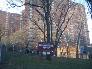 翌日、かつて彼女が実習などを経験し、また現在のまさにフィールドでもあるハーレムを探索しました。アフリカ系アメリカ人の低所得者が多く住む ハーレムは、彼女が卒業したコロンビア大学のすぐそばにあります。写真左は、政府が建てた低所得者向けの巨大な団地群です。治安が悪いことが有名で、夜に なると一人歩きはかなり危ないということでしたが、昼間に行ったせいか、あまりそういう印象はもちませんでした。