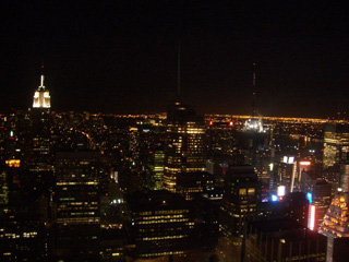 ニューヨーク最後の夜。「シカゴ」の後は、フィナーレとして、ロックフェラーセンターからの夜景です(写真右)。人間の欲望が無限に広がった、業 の深い、しかし美しい風景です。数々の夜景を観てきましたが、これほど横に広がった広大なものはありません。ロックフェラーセンターから観たので、エンパ イアーステイトビルも見えます。本当はかつては、その向こうにワールドトレードセンターも二つそびえ立っていたのでしょう。しかし、この欲望と虚飾の街 は、今ではもう何事もなかったかのように、呼吸を続けていました。