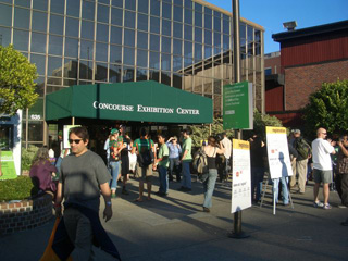 来年は3月にシアトル、5月にデンバーで開かれます。写真はどれも、会場の様子です。左が会場入り口。真中が立ち並ぶブースの様子。右が食事をし たり音楽を楽しんだりする場所です。本当にたくさんの人と、数え切れないほどのブースがありました。プログラムに載っている名前を数えてみると、出展者は ざっと400以上はあります。