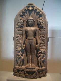 どの展示も、一言では言えないほどの迫力をもっていたのですが、ぼくは個人的に、初期仏教の時代のジャイナ教やヒンドゥー教のモニュメントが忘れられません(写真真中と右。真中がジャイナ教の聖像ですが、それは彼が一糸まとわぬ姿であることからもわかります)。
