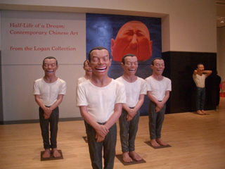 自分の国や人々を笑う力、批判する力、それは新たに台頭しつつある本当の中国の力を見た気がします。他にも、中央に眠る毛沢東に無数の小さい恐竜 や爬虫類が参拝に来ている図を模型で表現したものや、個々の眠ったような顔がプラスチックのケースに入れられて陳列されているもの、中年のように太った少 年が浜辺でサングラスをかけ、ベンツにもたれかかっている絵など、どの作品も、今、「夢」の中で生きる中国(人)の姿をリアリズムで切り取って表現するこ とに成功しているように思いました。