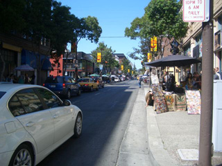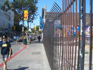 写真は、テレグラフ通りの写真です。左の写真の女性が着ているトレーナーには「黄金の熊(Golden Bear)」が描かれていますが、これはUCバークレーのキャラクターです(続く)。