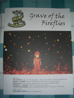 という企画に出席してきました。これはシリーズものなのですが、今日は高畑勲監督の「火垂の墓」が上映され、そのあと、日本文化の研究者たちがパ ネルディスカッションをするという企画です。専門は違うのですが、ちょうどまだ観ていなかったし、内容はまさに平和学なので、息抜きに出かけました。写真 はその時のパンフレットです。