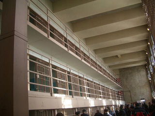 海流のせいか、なぜか島は、街と比べて気温が2度~3度は低いようでした。写真の中央は、監獄の中です。驚いたのは、かつての悪名高い囚人たちが 顔写真入りで説明されていて、それのみならず、お土産コーナーでもアルカポネをはじめとする囚人の写真がまるで芸能人のブロマイドのように売られていたこ とです。