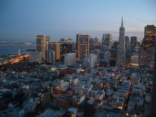 写真右は、帰りに立ち寄ったコイト・タワーから観た夕方のサンフランシスコです。