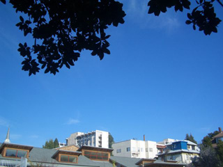 ここは、雪景色とはまったく対照的な、強い日差しとカリフォルニア・ブルーの空です。