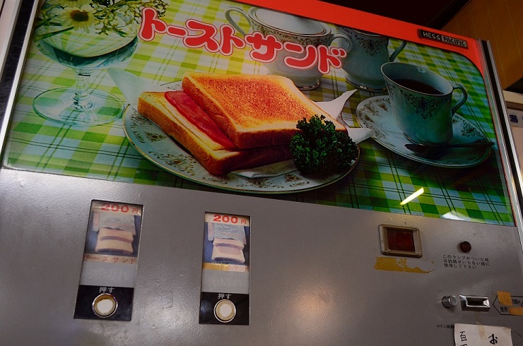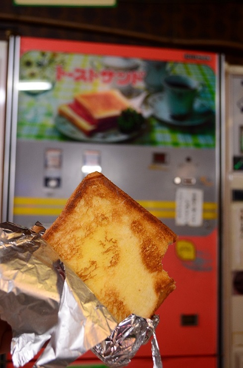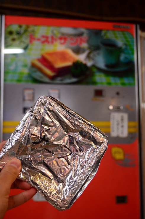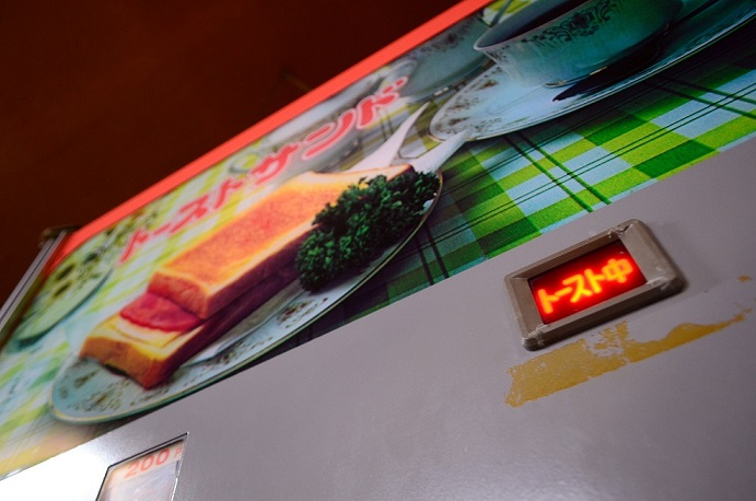トーストは、チーズサンドとハムサンドがあり、どちらも200円。お金を入れてからトーストするので出てくるまで少々時間を要する。