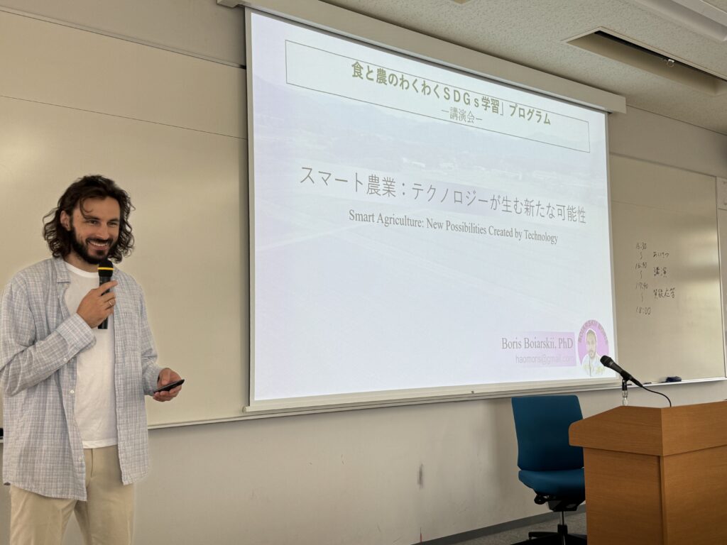 2回目の今回は元新潟大学 農学部 特任助教のボリス・ボアルスキー氏を講師としてお招きし、スマート農業の取り組みや導入のメリット・デメリットについて自身の研究成果を交えながら講演いただきました。