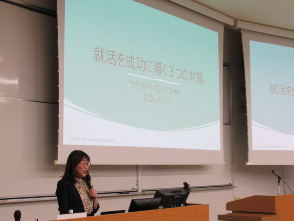 当日は137名が受講し、講座終了後も講師に質問や相談する姿が見られました。参加学生からは「実際に面接を体験することができ、不安を減らすことができた」、「本番までに改善すべき課題が見つかった」などの声が多く、参加学生にとって有意義な時間となりました。