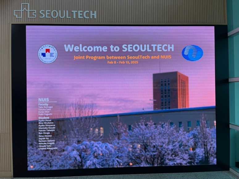 ソウル国立科学技術大学(SeoulTech)との特別連携により、申銀珠ゼミと佐藤泰子ゼミが共同で実施した5泊6日の合同ワークショップを、2月8日~13日にかけて実施しました。共通言語は英語。日本、韓国、イギリス、ロシア、ミャンマー出身の学生が一堂に会し、「異文化理解」と「国際交流」を深める貴重な機会となりました。