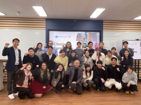 本学からは11名の学生が参加し、SeoulTechに在籍する韓国人学生や、多国籍の留学生(Buddy)と共に、国籍や文化の壁を越えた学びの場を共有しました。言語教育研究センターのMeerbek Kudaibergenov先生と、韓国言語文化グローバル学科のKyung Lee先生が合同企画したプログラムのもと、学生たちは互いに学び合いながら、異文化への理解を深め、新たな学びへのモチベーションを高めました。