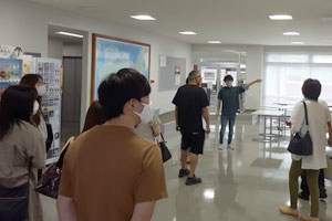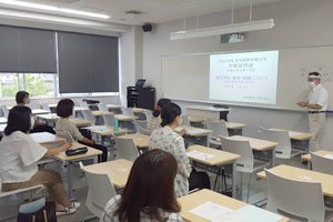入構時は検温や手指消毒の実施、説明会場である教室では、後期から始まる対面授業用に準備されました座席空間の確保、フェイスシールドの着用など、感染症対策を万全に行った中での開催となりました。