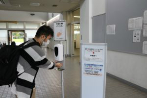 また、入口を2か所に限定して、手指消毒とマスク着用の徹底、会食による飛沫防止対策として学食には感染防止パーティションを設置しています。このように学内のあらゆる施設において万全な感染防止対策に努めています。