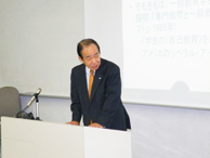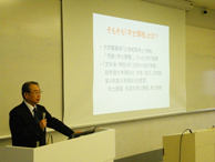 今回の研修会には、教職員約40名が参加し、平山学長の挨拶の後、第1部では、国際基督教大学元学長の絹川正吉氏から、『大学教育の展望 -「学士課程教育」と「リベラルアーツ」-』と題し、「学士課程教育」の意義等について、国際基督教大学での体験も織り込みながらの講演があり、講演後、活発な質疑、意見交換が行われました。