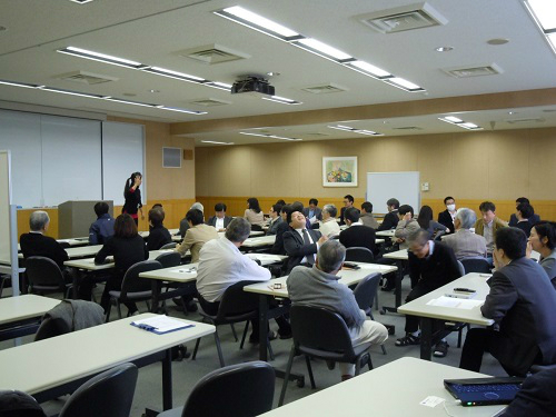 今回の研修会は二部構成で行われ、第一部では、本学のFD研修会では初となる参加型の研修を行いました。はじめは拍手回しゲームなどのアクティビティに戸惑っていた参加者も次第に積極的に取り組み、学生目線でアクティブラーニングを見るとどうなるかを理解していたようです。