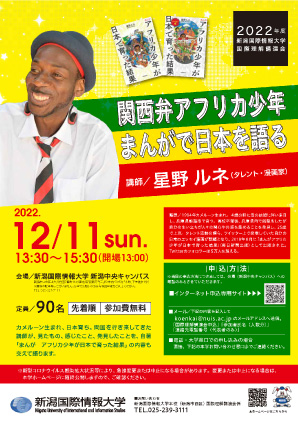 2022年12月11日(日)新潟中央キャンパスにて、「国際理解講演会」を開催します。今回は、漫画家の星野ルネ氏を講師としてお招きします。