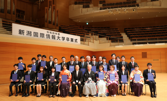 令和5年3月18日(土)日本技術者教育認定機構(JABEE)認定、情報システム技術プログラムの修了証書授与式を新潟市市民芸術会館(りゅーとぴあ)にて挙行しました。