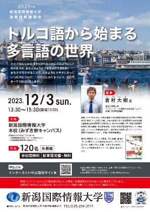 2023年12月3日(日)本校みずき野キャンパスにて、「国際理解講演会」を開催します。今回は、東京外国語大学アジア・アフリカ言語文化研究所フェロー/長崎大学非常勤講師の吉村大樹氏を講師としてお招きします。