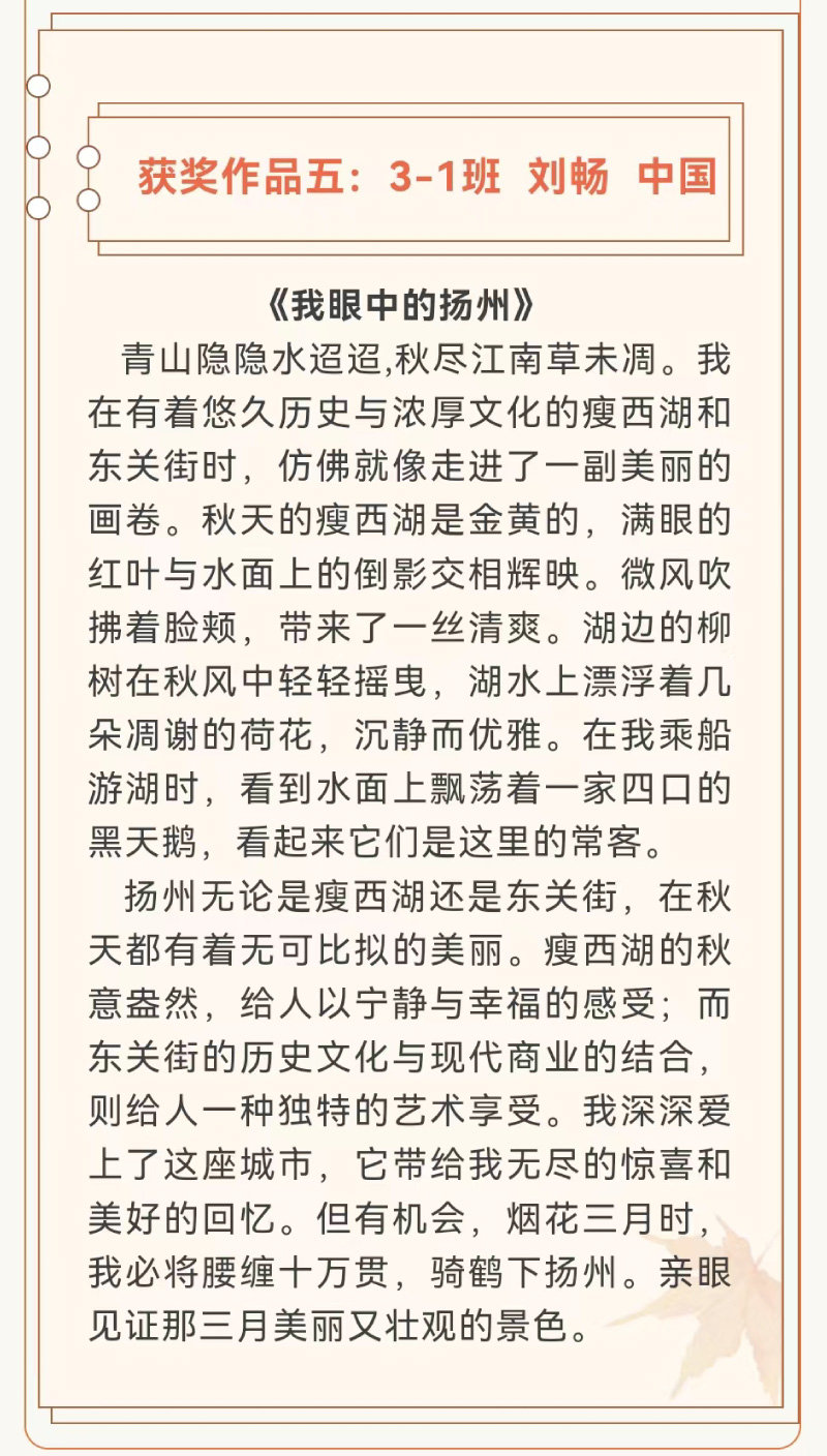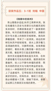 派遣留学で(中国上海)華東師範大学に留学中の棚橋 暢さん(国際学部 国際文化学科 2年)が、作文コンクールで優秀作文賞を受賞しました。本コンクールは、江蘇省鎮江市・揚州市への「語言実践・文化体験」(2023年11月22日~24日)に参加した留学生を対象とし、中国語で書かれた体験談から優秀作品を選ぶものです。
