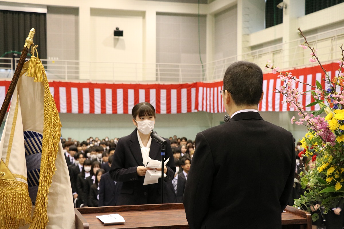 最後に、新入学生代表から抱負が述べられ、無事入学式が閉会されました。