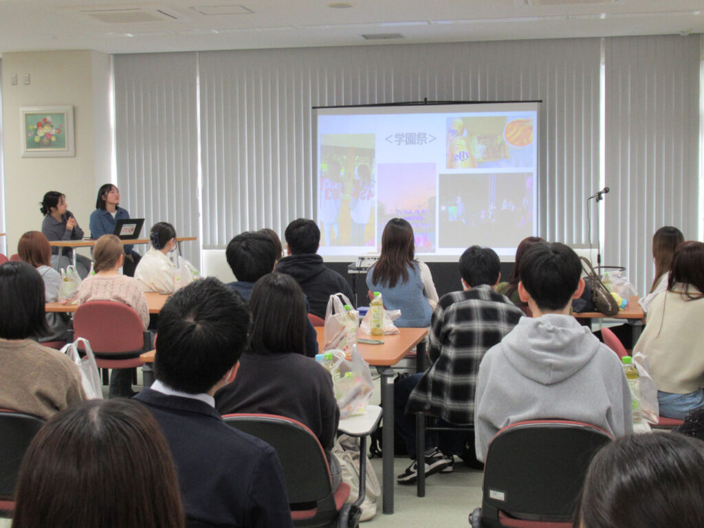 当会は、韓国の光云(クァンウン)大学からの交換留学生2名が、本学の学生生活に早く馴染めるように開催したものです。準備・運営は韓国語を専攻している留学生アドバイザー2名が務めました。