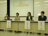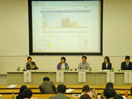 平成23年10月1日(土)に3年次生のご父母を対象とした、恒例の「父母就職説明会」を本校(みずき野キャンパス)で開催し、約80名のご父母が参加されました。第一部の「就職説明会」では、平山学長より開会挨拶として、昨今の厳しい就職状況と親子でのコミュニケーションの大切さについて話があった後、キャリア支援課 西脇課長が「本学の就職活動支援の取り組みと現状」について講演しました。その後のパネルディスカッションでは、授業科目「キャリア開発」の講師である、就職・採用アナリストの斉藤幸恵先生をコーディネーターに、パネリストの卒業生2名と、4年次生2名(就職内定者)を交え、それぞれ就職活動を振り返りながら、就職環境の現状を踏まえた視点で、親の接し方について「良かったこと」や「嫌だったこと」などが話されました。