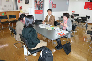 野崎 茂 学長の挨拶に始まり、教員による学部・学科説明が行われた後、個別相談会や学内見学、在学生による進学・留学相談コーナー、就職相談会が行われました。参加者は学生生活や留学について熱心に質問をしていました。