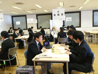 4年次生の就職サポート強化施策である「第3回学内合同企業説明会」を10月16日(火)新潟中央キャンパスで開催し、約30名の学生が参加しました。今回は県内外より、13社にお越しいただき、今後の選考に関してご説明いただきました。冒頭では、キャリア支援課の西脇 茂雄 課長より「この時期は固定観念にとらわれず、まずは行動することが大切」とエールが送られました。参加した学生は、チャンスを活かすべく、熱心にメモを取りながら質問をぶつけていました。