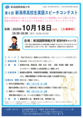 2020年10月18日(日)本学新潟中央キャンパスにて、新潟県内の高校生を対象とした「第6回新潟県高校生英語スピーチコンテスト」を開催します。応募要項等の詳細は以下のとおりです。高校生の皆さんのご応募をお待ちしております。