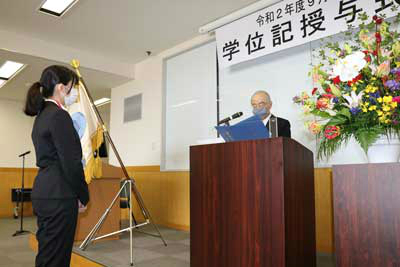 本日、本年度の9月期学位記授与式が本校大会議室で行われ、卒業生4名に対し野崎茂学長から学位記を授与されました。