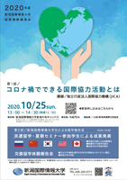 2020年10月25日(日)新潟中央キャンパスにて、「国際理解講演会」と「留学報告会」を開催します。当日は、独立行政法人国際協力機構(JICA)海外協力隊員などを講師としてお招きし、「コロナ禍でできる国際協力活動とは」という演題で活動の現状についてお話しいただきます。