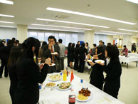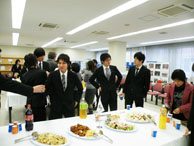1月25日(水)本校(みずき野キャンパス)の国際交流センターで、情報文化学科の派遣留学制度(ロシア・中国・韓国・アメリカコース)と情報システム学科の海外夏期セミナー(カナダコース)に参加した学生の「帰国報告会」を開催しました。今年度は合計55人が派遣留学と海外夏期セミナーに参加しました。報告会では、学長挨拶、学部長挨拶・乾杯の後、用意された軽食やジュースを囲みながら、担当教員や苦楽を共にした仲間とあらためて留学の思い出を語り合っていました。歓談の後、各コースの代表から留学の報告が行われ、外国生活での文化・習慣の違いによる戸惑い、日本にいては経験することのできない貴重な体験、留学先の学生や他国の留学生と友達になり今でも連絡を取り合っていることなど、思い出のたくさん詰まった報告がなされ楽しいひと時を過ごしました。最後に両学科長から学生に向けて、留学の経験を生かし有意義な大学生活にしてほしいとの激励の言葉が贈られました。