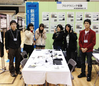 平成25年2月9日(土)、10日(日)の両日、長岡市にあるアオーレ長岡にて「青少年のための科学の祭典」新潟県大会が開催され、本学から情報システム学科 中田 豊久 講師および同学科の学生6名が出展しました。これは、青少年が自分自身で実験や工作を体験し、科学の面白さを感じてもらうための平成4年から始まったイベントです。今回の新潟県大会では、2日間で約1万5千人の入場者がありました。