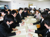 平成25年2月17日(日)本校(みずき野キャンパス)で、「就職模擬面接講座」を実施しました。この講座は、就職活動や自分の進路に対して、“教えてもらう”のではなく、同期生や4年次生、そして卒業した先輩、さらに採用や若者の進路支援の現場で活躍する社会人の方々の力を借りながら、“自分の就職活動スタイルや進路選択”を考え、つかみ取っていくことを目的として、平成17年から実施しています。今回は、3年次生124名が受講しました。