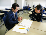 平成25年3月5日(火)本校(みずき野キャンパス)にて、新潟日報社の記者による「作文講座」を就職活動中の3年次生対象に実施し、11名が受講しました。作文講座は、『新潟日報社アメカゴ-net』からご協力いただき、後期就職ガイダンスの中で学習しましたが、今回は、文章表現力のブラッシュアップを目的に、1対1の個別形式でテーマにそった指導をしていただきました。参加した学生は、文章能力を磨く絶好の機会を活かすべく、一言一句メモを取ったり、積極的に質問するなど、それぞれ充実した時間を送っていました。