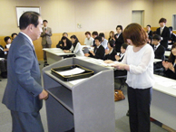 平成25年6月19日(水)本校(みずき野キャンパス)において、平成25年度派遣留学及び海外夏期セミナーに参加する学生への奨学金授与式と壮行パーティーを開催しました。