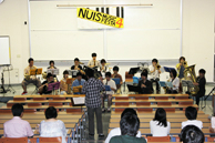 平成25年7月6日(土)本校(みずき野キャンパス)で、「第4回NUIS MUSIC FESTA」と題し、学内の音楽系クラブ団体による合同音楽祭を開催しました。大荒れの天気にもかかわらず、多くの方々にご来場いただきました。当日は、合唱部、アカペラサークルjoin’、吹奏楽部、軽音学部が演奏を披露し、来場者を楽しませていました。