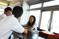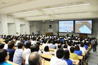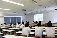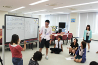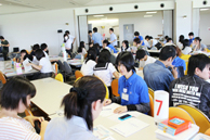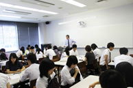 平成25年7月21日(日)本校(みずき野キャンパス)にて、第1回オープンキャンパスを開催しました。今回も十日町、高田、長岡、村上の各方面より無料往復送迎バスが運行され、200名以上の高校生や保護者の方々からご参加いただきました。当日は、本学学生が参加者を一日サポートし、模擬講義やキャンパスツアーなど、様々な内容を案内しました。平山 征夫 学長の挨拶に始まり、教員及び学生による学部・学科説明が行なわれた後、模擬講義や実習体験が行われました。語学体験(ロシア語・中国語・韓国語・英語)のほか、国際交流インストラクター(学生)によるワークショップ形式の授業、「ビジネスゲームを体験」「ロボットの動作を体験」など、合計13の講義や実習を開講し、参加者にはそれぞれ関心のあるものを選択して大学の講義を体験していただきました。