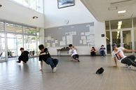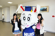 その他、入学試験の説明会、保護者対象説明会、参加者が気軽に立ち寄れる入試・就職の個別相談コーナーが設置され、入試情報や奨学金、就職状況等について、参加者は熱心に質問をしていました。海外留学相談コーナーでは、本学の特色の1つである派遣留学制度・夏期セミナー(アメリカ・ロシア・中国・韓国・カナダ)で実際に留学を体験した学生から、制度の特色や海外生活の体験談が語られました。また、公認団体(部活・サークル)紹介では、ダンス部がパフォーマンスを披露しました。さらに、特別サプライズゲストとして、UX新潟テレビ21のインターネットTV「レクスタTV」に出演中の「ぽこぴー」が学生食堂「弥彦」にて演奏を披露、そして本学のマスコットキャラクターのナビット君も登場し、参加者をそれぞれ楽しませていました。