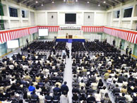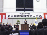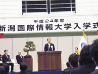 平成24年度(第19回)入学式が、4月1日(日)本校(みずき野キャンパス)の体育館で行われました。今回の新入生は情報文化学科132人(編入学生1名含む)、情報システム学科168人の合わせて300人。多くのご父母らが見守る中、新たな学生生活をスタートさせました。