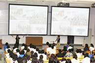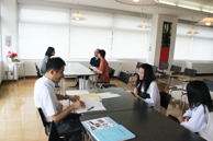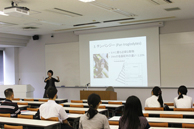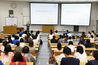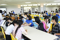 平成25年9月8日(日)本校(みずき野キャンパス)にて、第3回オープンキャンパスを開催しました。今年度最後のオープンキャンパスとなった今回、100名以上の高校生や保護者の方々からご参加いただきました。当日は、本学学生が参加者を一日サポートし、模擬講義やキャンパスツアーなど、様々な内容を案内しました。越智 敏夫 学部長の挨拶に始まり、教員及び学生による学部・学科説明が行なわれた後、模擬講義や実習体験が行われました。語学体験(ロシア語・中国語・韓国語・英語)のほか、ノーベル平和賞やチンパンジー、ハリーポッターなどをそれぞれ題材とした模擬講義、コンピュータ実習など、合計10の講義や実習を開講し、参加者にはそれぞれ関心のあるものを選択して大学の講義を体験していただきました。