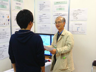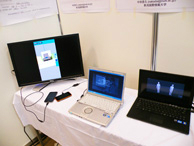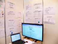 本学は、高木研究室で開発された栄養計算データベース、中田研究室で開発された物理エンジンを用いた様々なアプリケーションについて展示を行いました。情報システム学科では、講義演習等でプログラミング技術を学ぶだけでなく、学んだ技術を実社会で生かすことを試みる取り組みを行っています。その例として今回の展示では、栄養計算データベース、物理エンジンを用いたアプリケーションなどについて紹介しました。そして、来場者のいくつかの企業担当者から興味を示していただき、今後の研究につながる貴重な意見をいただくことが出来ました。